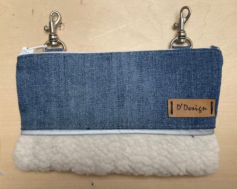 Het werd een klein en subtiel ontwerp van denim, afgewerkt met een speelse rand van bont. Juist die combinatie gaf het tasje een unieke uitstraling die perfect aansloot bij haar creatie.