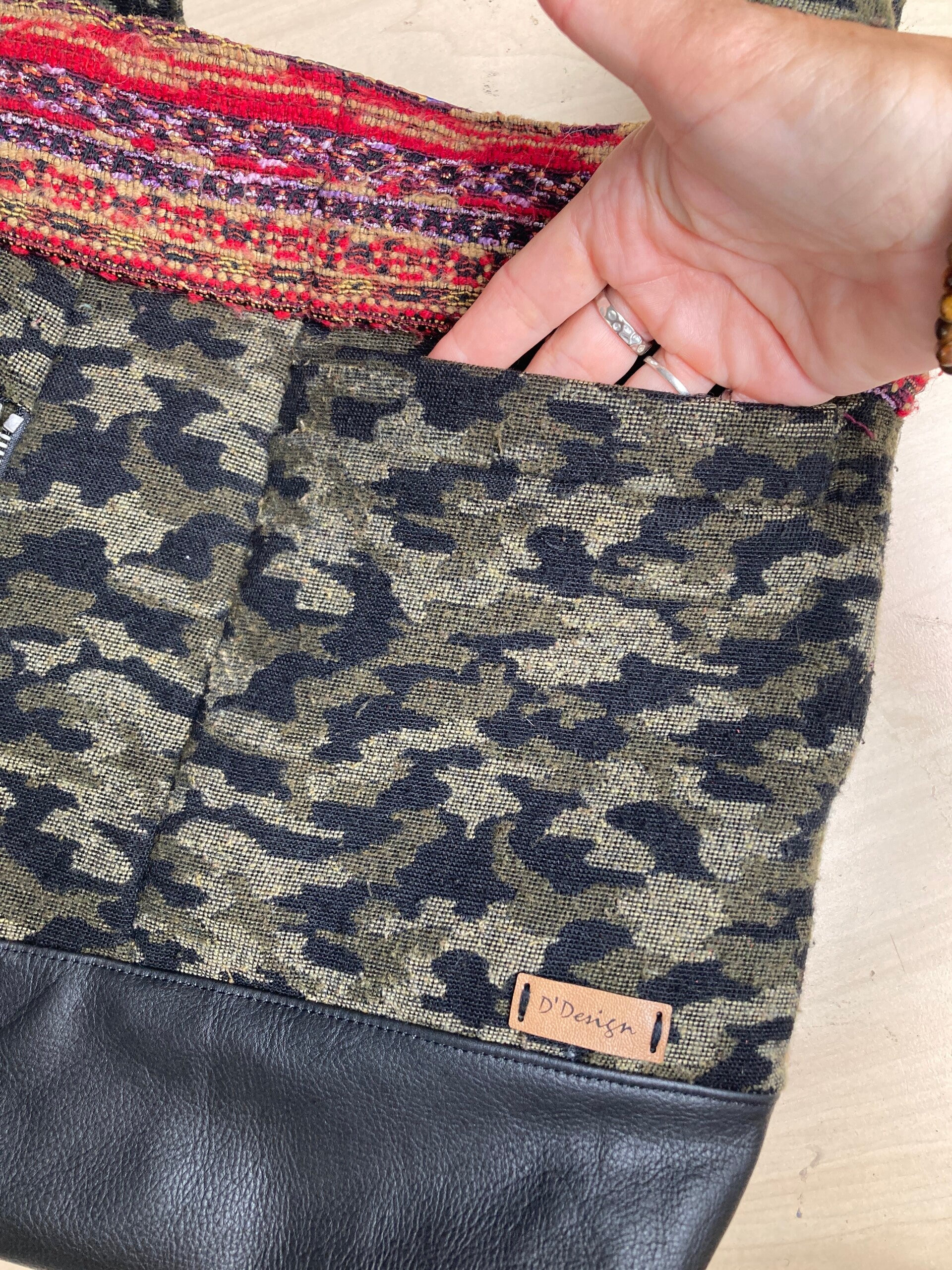 Voor een klant mocht ik een bijzondere herinneringstas maken. De tas is volledig gemaakt van de stof en voering van de jas van haar overleden zus, die jarenlang in de kast had gehangen. De bodem is versterkt met leer voor stevigheid, maar verder is alles authentiek hergebruikt.