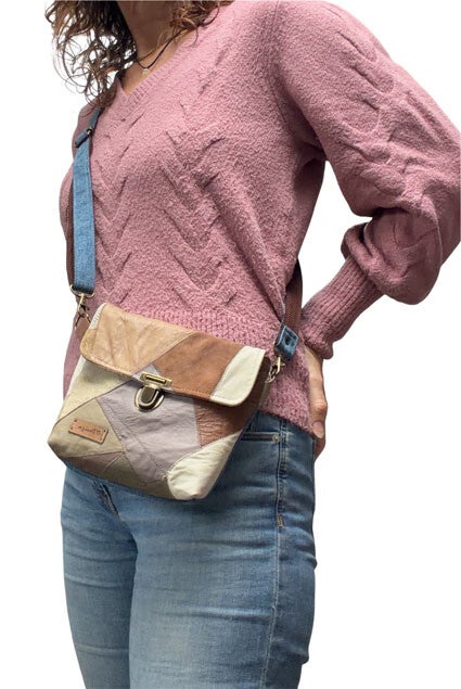 Gemaakt van een echte leren damesjas – dus duurzaam én vol karakter.