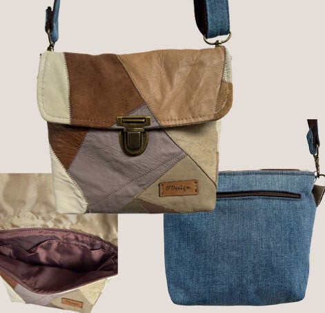 Elk D'Design tasje is one-of-a-kind. Hoewel sommige modellen dezelfde afmetingen hebben, is geen enkele tas exact hetzelfde. Ze variëren van moderne hipbags (15 cm hoog) tot stijlvolle schoudertassen (20-25 cm hoog), met diverse sluitingen zoals magneten, ritsen en clips.
